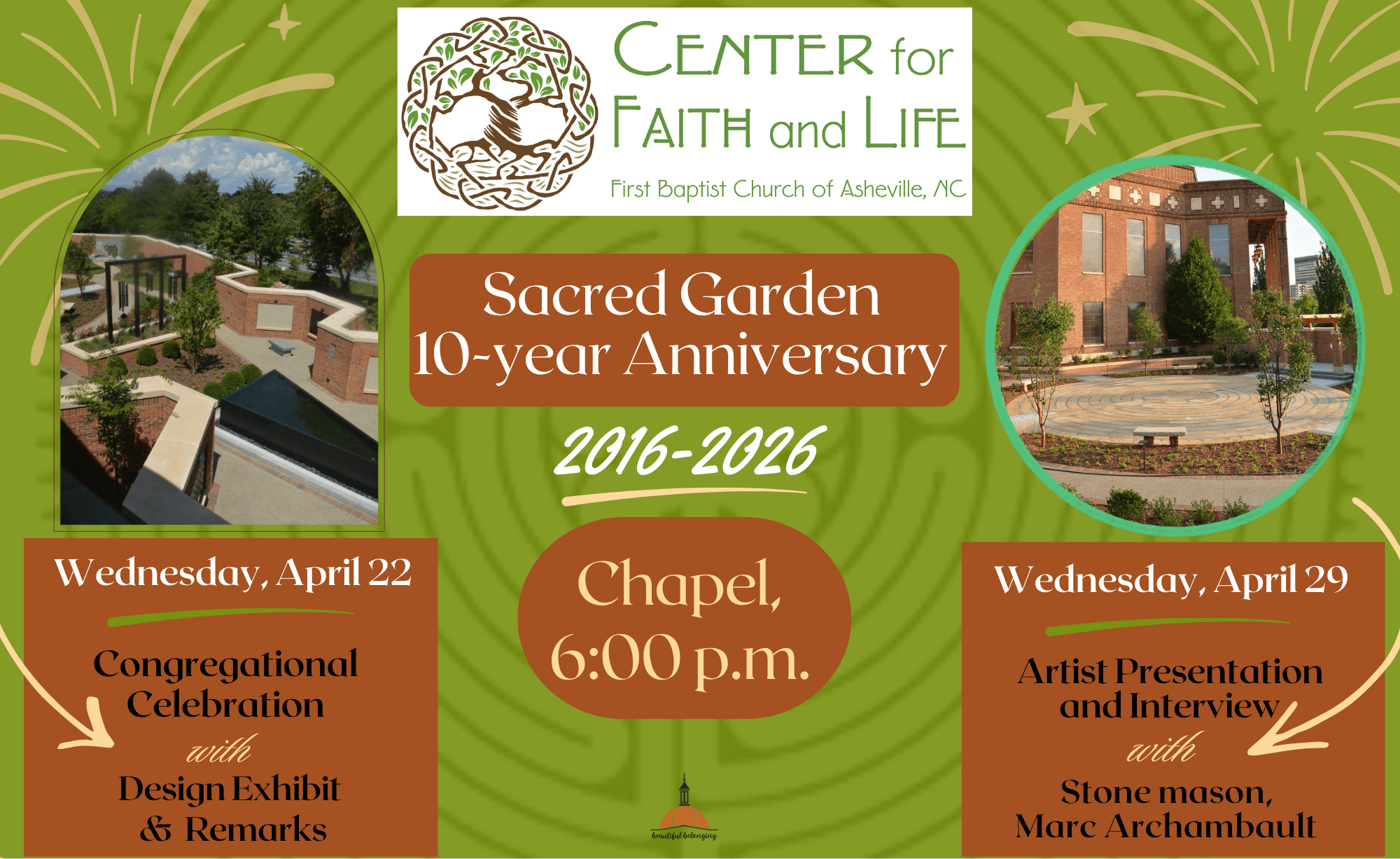In preparation for these commemorative events, we’d love to learn about meaningful moments you’ve had in the sacred garden or walking the labyrinth. Please take a moment to share here by Monday, April 20.